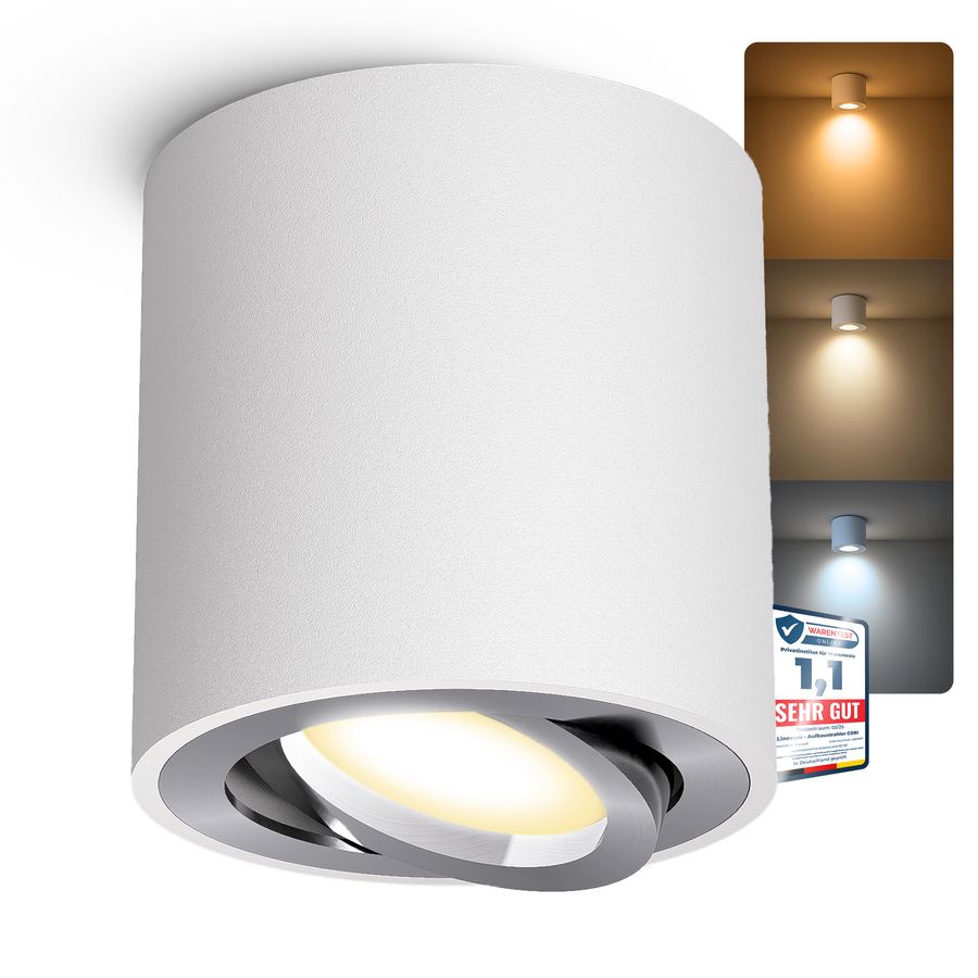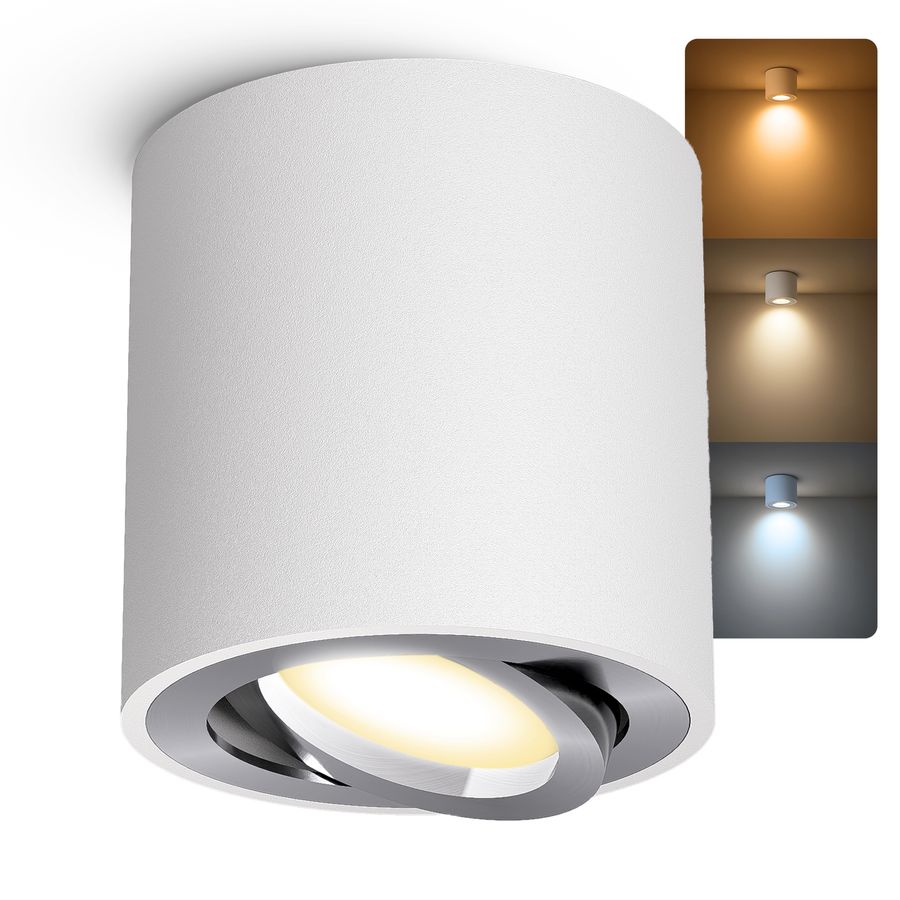 Aufbauleuchte CORI in weiß silber & schwenkbar mit LumiFLEX LED GU10 6W warmweiß + neutralweiß + tageslicht 230V