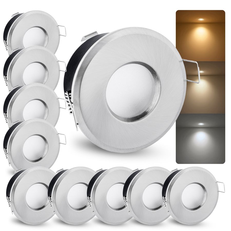 10 Stück LED Einbaustrahler IP65 neutralweiß GU10 3W 230V - Edelstahl Optik rund starr