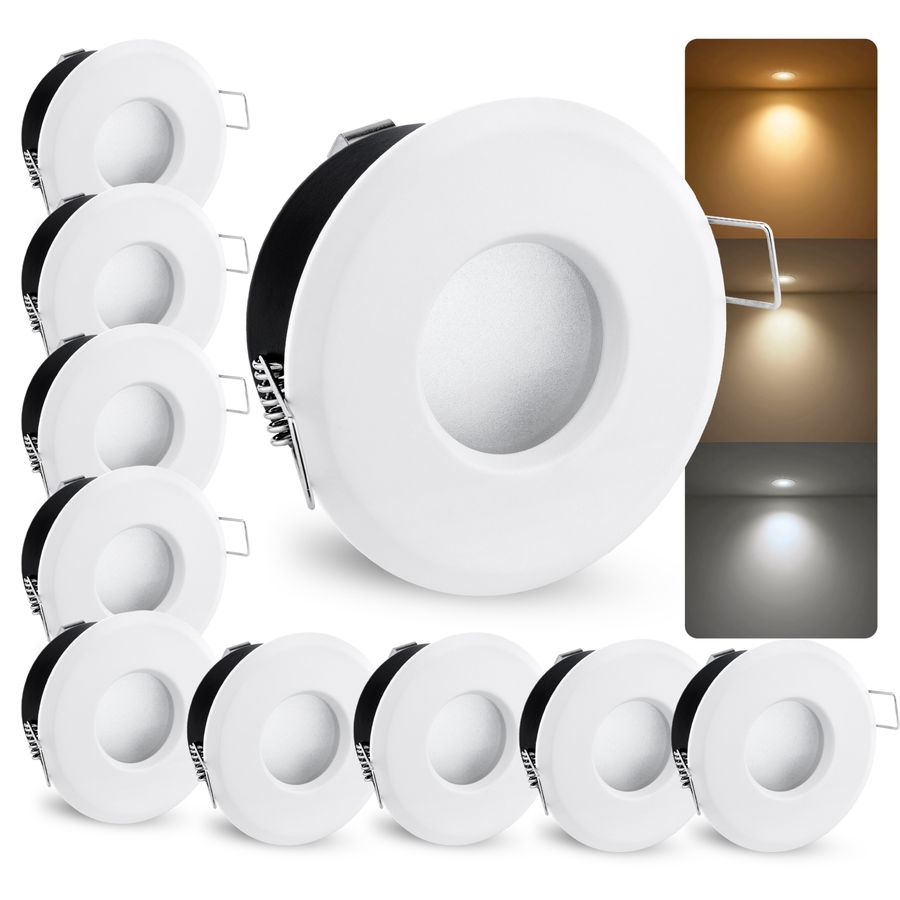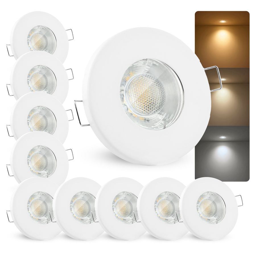 10 Stück LED Einbaustrahler IP65 neutralweiß GU10 3W 230V - Rund starr flach