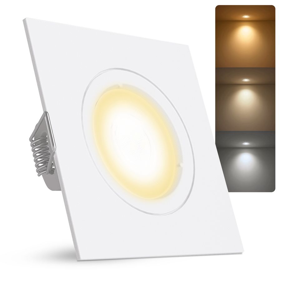 LED Einbauleuchte Deckenspot matt-weiß eckig starr inkl. LumiFLEX LED GU10 6W warmweiß + neutralweiß + tageslicht